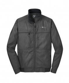 100% Poly Dobby. Zip-Through Cadet Collar With Rib Knit. Two-Way Zipper. Rubber OGIO Detail On Center Back Waist Inner Liner. Metalux Zipper With Rubber OGIO Zipper Pull. Zippered Front Pockets With Rubber O Zipper Pulls And OGIO Rivets.